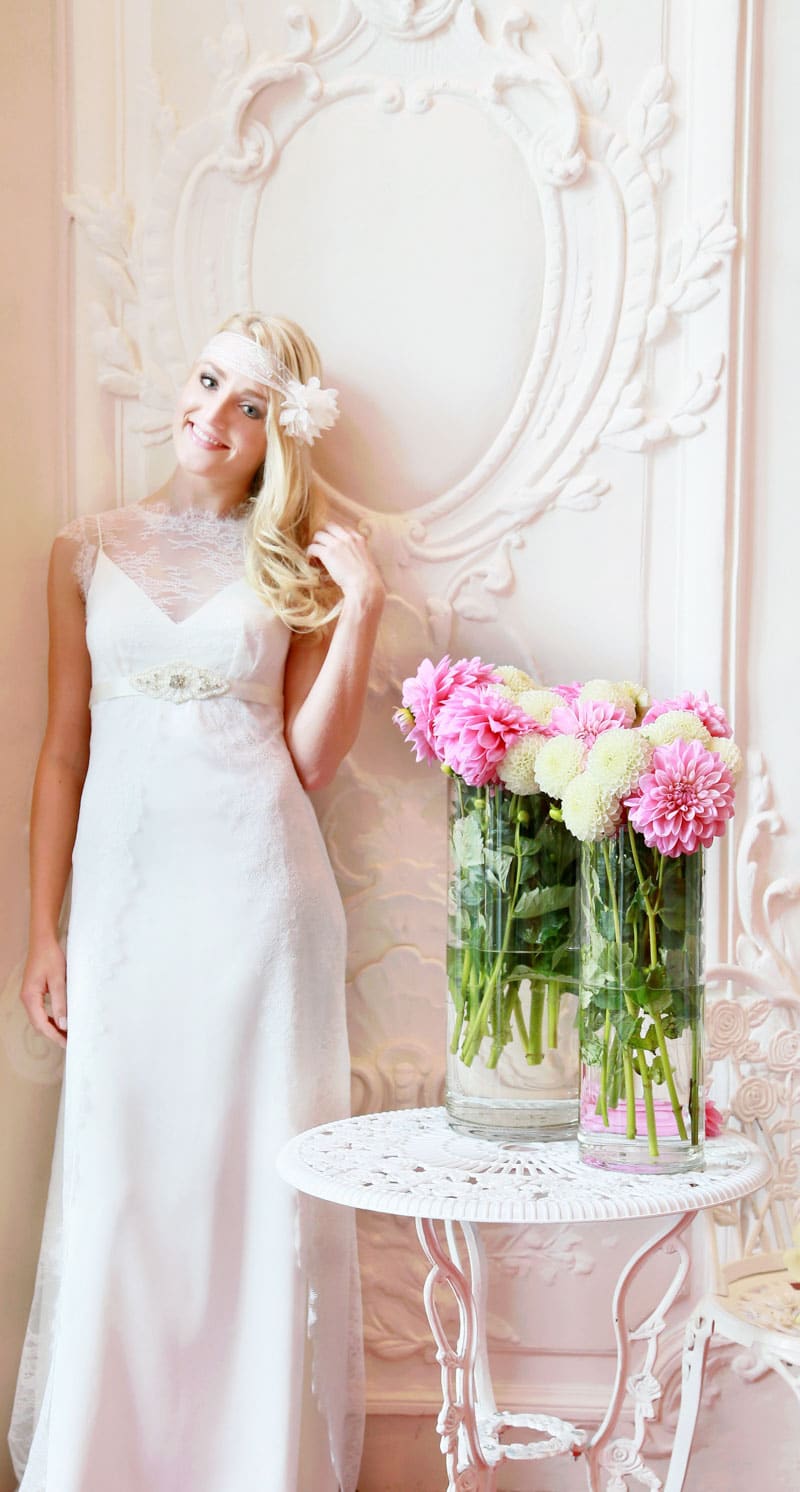 Besonders ist bei dem Brautkleid Linnea der Ausschnitt, der mit Raschelspitze überzogen ist und mit der Transparenz und Blickdichtigkeit spielt. Die Applikation unter der Brust, sowie die Spitzenträger tragen zu einem feenhaften Auftreten bei. Das Spitzenkleid öffnet sich vorne im Manteleffekt, so schwebt die Spitze feenleicht umher.