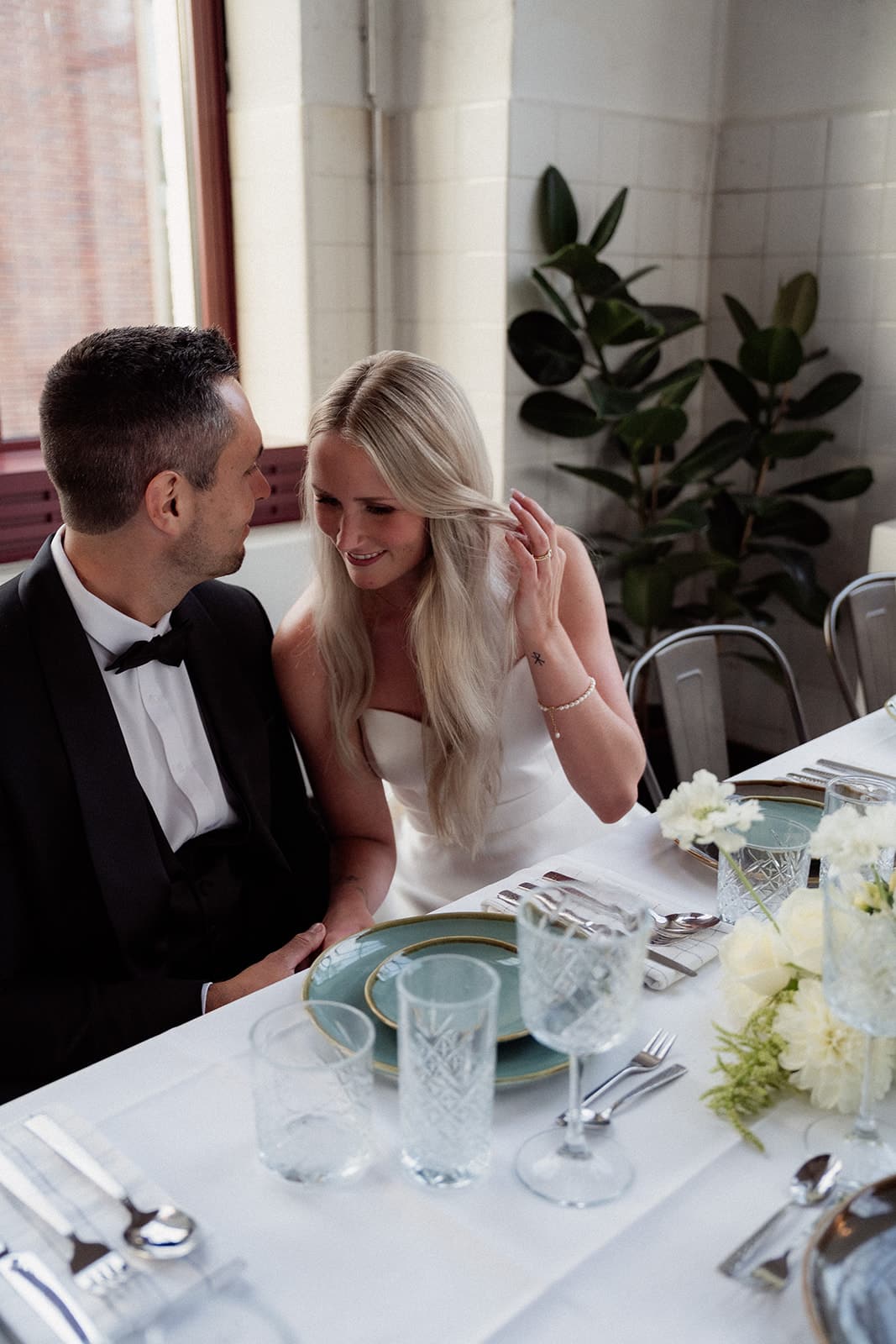 Fotografin Julia Graf hat diese Atmosphäre perfekt eingefangen: sanftes Licht, klare Linien, pure Emotionen. Die liebe Sabine von Garten und Dekoration schuf mit ihren Blumenarrangements eine zarte, organische Komposition, die das Thema „Schlichte Brautkleider Hamburg“ perfekt ergänzt. Und Make-up-Artistin Tanja Urbach sorgte für einen Look, der die natürliche Schönheit der Braut sanft unterstreicht.